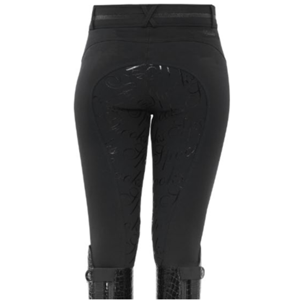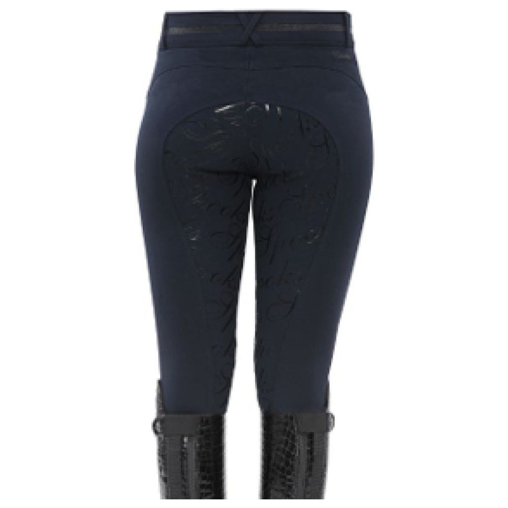 Very comfortable and elegant breeches with spooks writing grip and elastic leg cuffs. A closable front pockets, along with a mobile phone pocket on the right thigh, our Laurah breeches have plenty of room to carry your essential items. The waistband has decorative glitter detail making wearing a belt optional & on the back of the breeches are sweet details such as a glitter decoration and SPOOKS writing. The slightly higher waistband leaves room for any kind of belt and fits perfectly. For lovers of our Sarina Breeches, the Laurah Breeches are a near identical style with the addition of a phone pocket. We recommend that you size down in this style of breeches