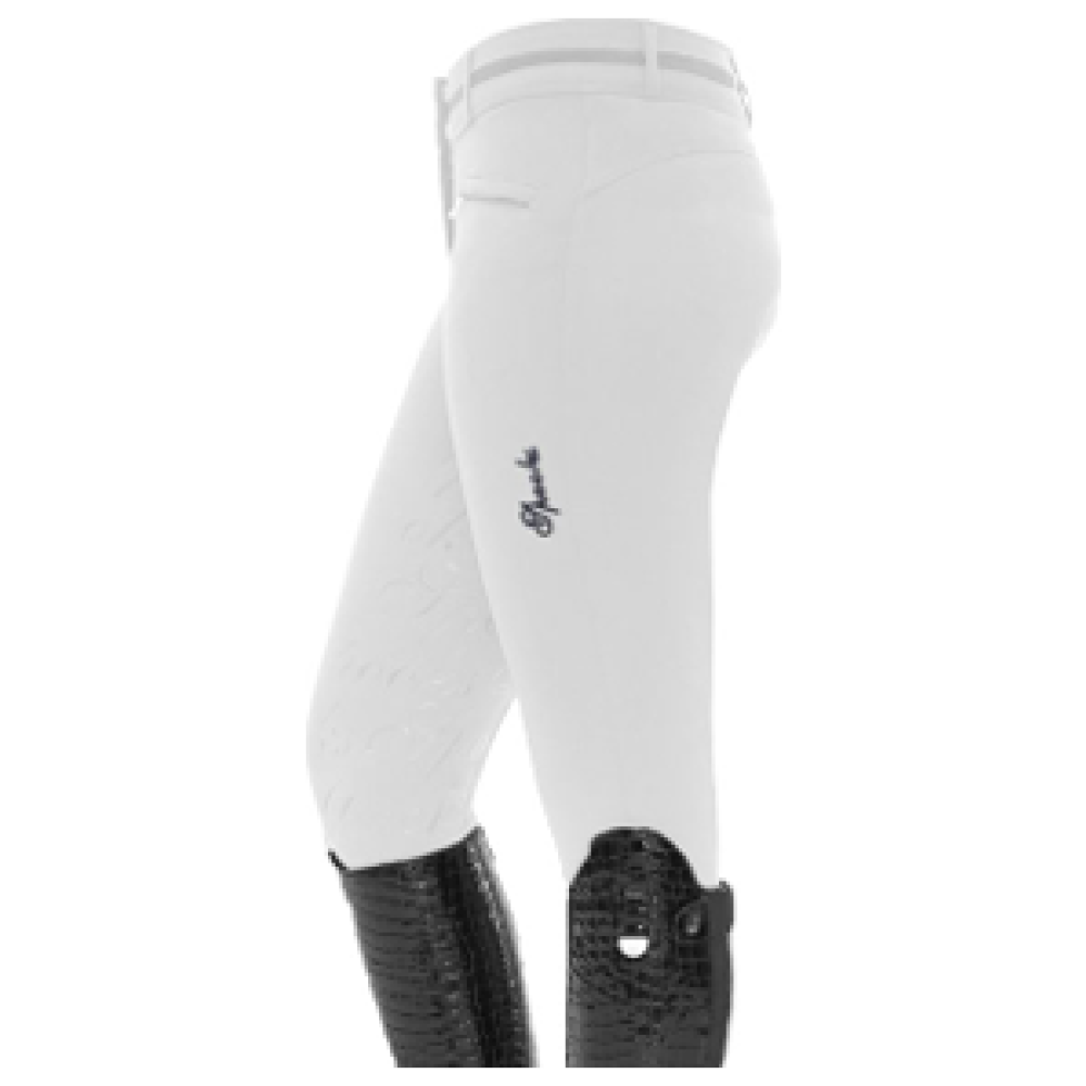Very comfortable and elegant breeches with spooks writing grip and elastic leg cuffs. A closable front pockets, along with a mobile phone pocket on the right thigh, our Laurah breeches have plenty of room to carry your essential items. The waistband has decorative glitter detail making wearing a belt optional & on the back of the breeches are sweet details such as a glitter decoration and SPOOKS writing. The slightly higher waistband leaves room for any kind of belt and fits perfectly. For lovers of our Sarina Breeches, the Laurah Breeches are a near identical style with the addition of a phone pocket. We recommend that you size down in this style of breeches.